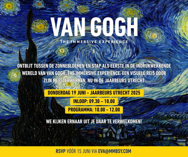 De betoverende wereld van Vincent van Gogh komt tot leven in deze baanbrekende tentoonstelling. Van Gogh: The Immersive Experience combineert kunst, technologie, storytelling en educatieve verdieping om een rijk en veelzijdig perspectief te schetsen van een van Nederlands grootste kunstenaars. Je wordt meegenomen op een visuele reis langs zonnebloemvelden en bloeiende amandelbomen, en dompelt jezelf onder in een veelzijdige tentoonstelling die Van Goghs nalatenschap op meeslepende én leerzame wijze tot leven brengt. Deze unieke beleving wordt gepresenteerd door Exhibition Hub - internationaal curator, producent en distributeur van grootschalige tentoonstellingen en familie-entertainment, en Fever, hét wereldwijde platform voor live-entertainment en beleving.